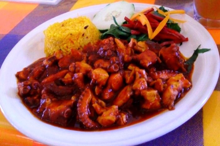 - Agrege el pulpo cocido a la salsa y cocine por 5 minutos más.